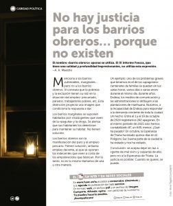Menciona a los barrios vulnerables, marginales… pero no a los barrios obreros. Sí constata que la pobreza y la exclusión tienen su raíz en la situación del empleo: precariado, parados, trabajadores pobres, etc. Esta distinción proyecta una imagen que condiciona la respuesta a dar.